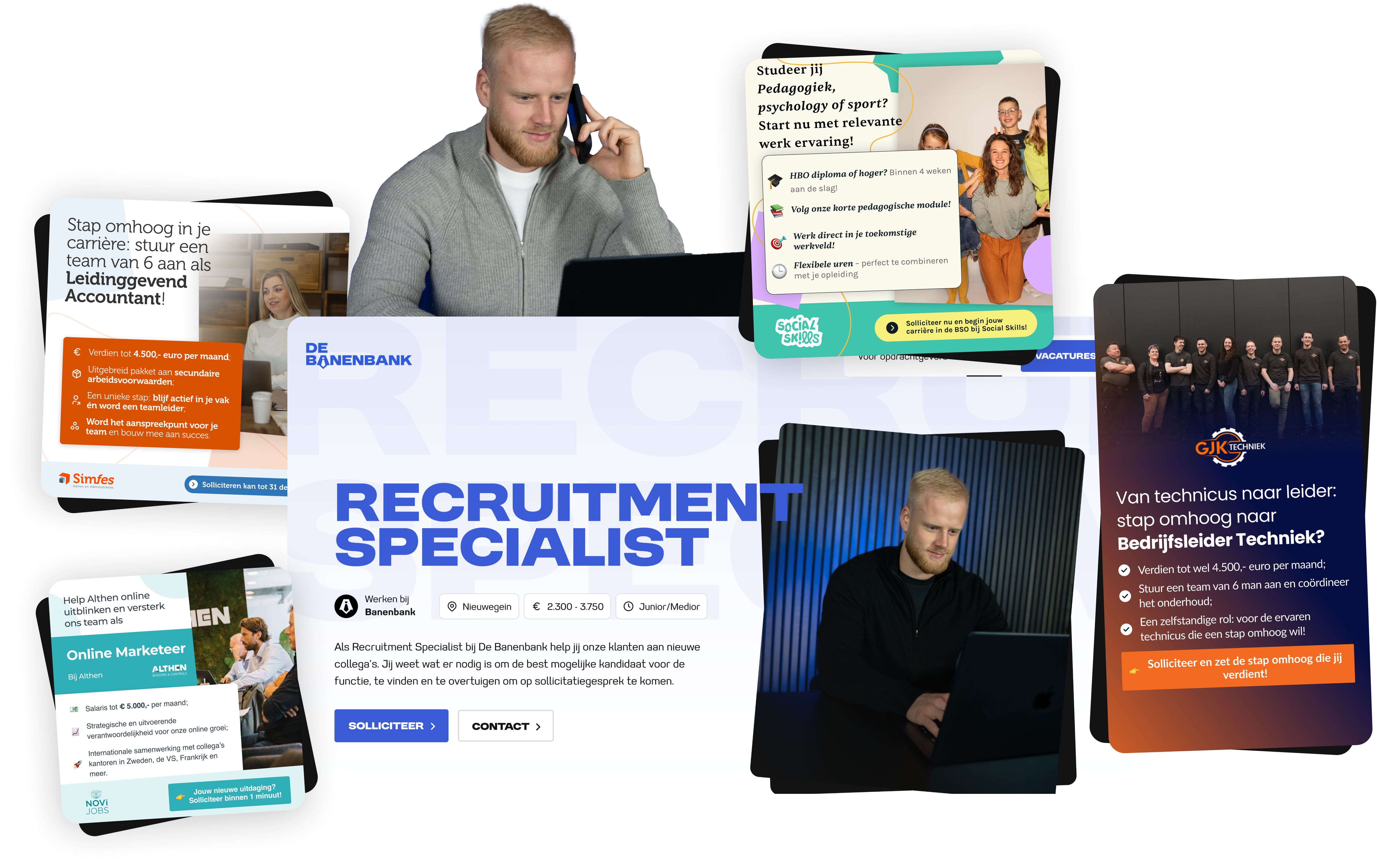 Bij De Banenbank begrijpen we dat de arbeidsmarkt drukker en uitdagender is dan ooit. Daarom kiezen wij voor een frisse, moderne en creatieve aanpak die resultaat oplevert. Wij werven talenten voor jouw organisatie via sociale media, een krachtig en effectief middel om jouw vacature onder de aandacht te brengen bij de juiste doelgroep en snel jouw openstaande positie te vervullen.